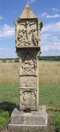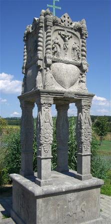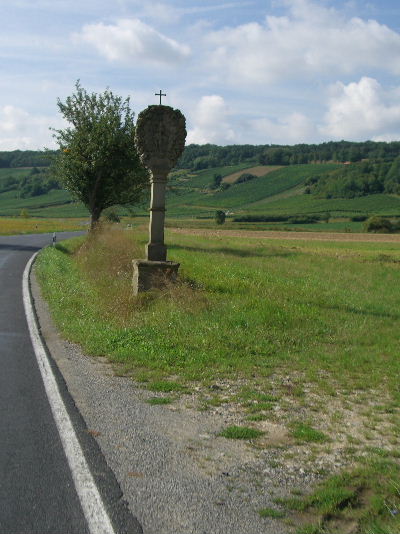 Mainfranken Land der Bildstöcke, rechts die graue Marder der bekannteste mainfränkische Bildstock kurz vor Sommerach
