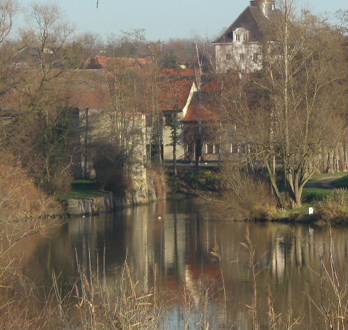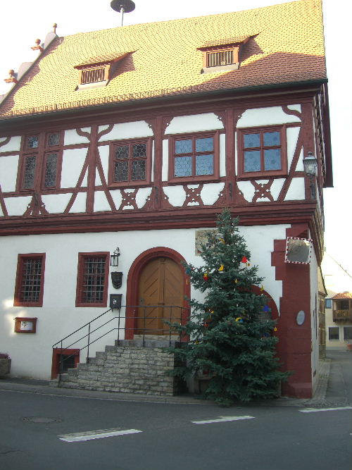 Rathaus von Segnitz in der "Wintersonne" - wenn der Christbaum nicht wär könnte man meinen es wär im Frühjahr